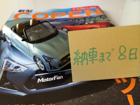 発注から約二ヶ月、もうすぐ会えます。 そして、もうすぐコペンユーザーの仲間入りです。 諸先輩方、よろしくお願いします。